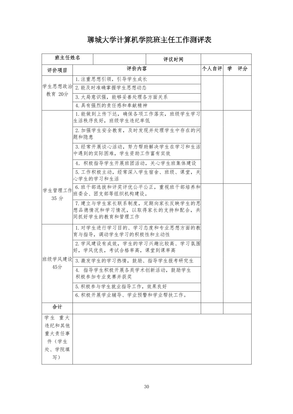 2、班主任工作考核主要根据基础工作和工作实绩情况,从德、能、勤、绩、廉等方面进行综合考核。班主任本人填写《糖心vlog 班主任工作测评表》(见附件),班主任考核工作小组结合《糖心vlog 班主任工作测评表》和《糖心vlog 班主任工作考核学生测评表》(见附件)综合评定。