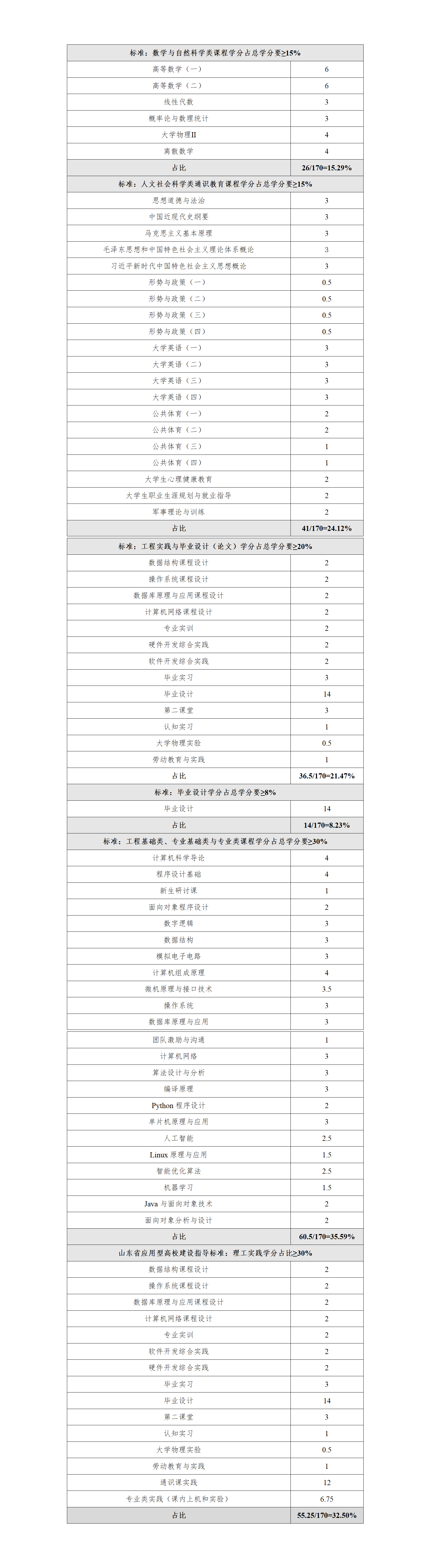本专业适应国家和鲁西现代化经济发展需求,培养适应信息社会和知识经济时代需要,具有良好的人文社会科学素养和职业道德的社会主义事业合格建设者和可靠接班人;培养具备扎实的数学、自然科学基础和计算机专业技术知识,富有创新意识、实践能力和终身学习能力,具有国际视野、团队合作精神和组织管理能力的计算机领域高素质应用型人才。毕业生能够在计算机应用及相关领域从事计算机科学与技术、软/硬件、嵌入式系统的研究、设计、开发及管理等方面的工作,并且达到工程师职业水平。