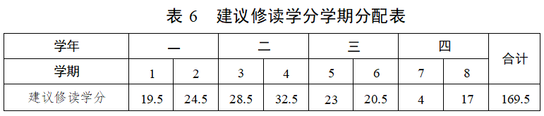 本专业基本学制为四年,学校实行学分制下的弹性学制。计划总学时为 2727 学时,总学分为 169.5 学分。允许学生在 3~6 年内修完规定课程,修满规定学分,准予毕业。符合学位授予条件者,经校学位委员会审核通过,可授予工学学士学位。