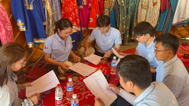 在呼和诺尔湖畔,实践队员走访调研陈巴尔虎旗周边的牧户居民,详细了解他们的特色生活方式、基本收入结构、牲畜饲养情况,认真倾听牧民群众对民族特色生态体系的讲解、记录建设发展过程中的重点和难点。实践队员纷纷建言献策,提出关于特色产业发展、基础设施建设、环境卫生整治等方面的建议,为解决居民问题提供了新思路。实践队员在当地居民的讲解和引导下,亲身感受当地牧民的生活,体验搭建最原始的蒙古包,深刻感受到蒙古人民因地制宜的智慧和独具特色的创造力,切身体会到改革开放后蒙古地区的快速发展是边疆地区贯彻落实新发展理念、推动高质量发展的生动实践,也是我国边疆治理体系和治理能力现代化的重要体现。在走访调研的最后,实践队员来到居民区,对当地居民进行问卷调查,与他们进行广泛的交流,探访他们当今生活现状的幸福指数,认真听取各方面的意见和建议,进行全方位多层次地了解。通过此次走访调研,实践队员不仅亲身体验了草原文化的独特韵味,感受到中华优秀传统文化的博大精深,并且深刻认识到优秀传统文化在现代社会中的重要价值,激发了队员们传承和弘扬中华优秀传统文化的责任感和使命感。