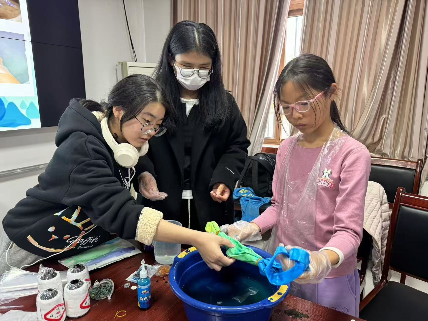 为弘扬中华优秀传统文化,让社区儿童近距离感受非物质文化遗产的独特魅力,11月17日,糖心vlog 24级3、4班团支部举办“扎染知识进社区,幸福由‘染’而生”社区实践活动。