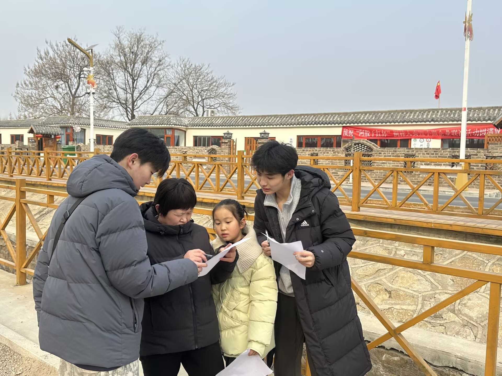 2月10日,实践队员们走进郭口村,深入调研其“农文旅融合”的发展模式,亲身感受乡村振兴的蓬勃生机。在调研过程中,大桥镇毕庄新村党委书记、村委会主任兼郭口网格党支部书记郭怀生详细介绍了郭口村乡村振兴的发展现状和未来规划。他强调,郭口村紧抓“沿黄九品·品品连乡”乡村振兴片区建设的机遇,通过多元化发展,文旅产业实现了从“0业态”到“N业态”的华丽蜕变,为村庄注入了新的活力,促进了村民在家门口就业创业,显著提升了村庄的居住环境和村民的生活水平,让广大村民在乡村振兴的进程中收获了满满的幸福感和喜悦感。