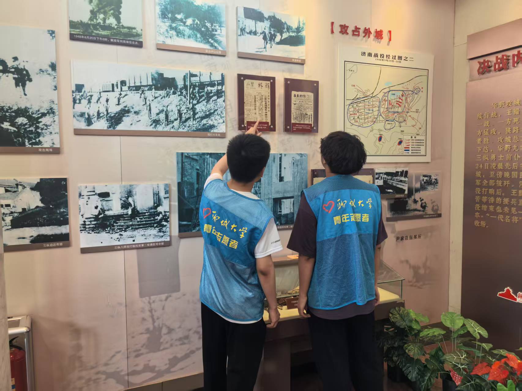 7月3日,“星火筑梦”志愿服务队前往解放阁及解放纪念馆,在实践中感受历史传承的力量。工作人员介绍了解放阁和解放纪念馆的构成元素,阐述了背后蕴含的革命精神,引领大家深入学习济南战役的伟大胜利。同时,讲解了内部陈列的济南战役革命文物,完整还原出了当年的战斗场景,让人们仿佛回到了那段充满血与火的岁月。随后,在工作人员的指导下,团队成员登上解放阁二层,通过照片、文字实物等多种形式,详细了解济南战役胜利后的发展历程,展示了济南在中华人民共和国成立后的建设成就与发展变迁。
