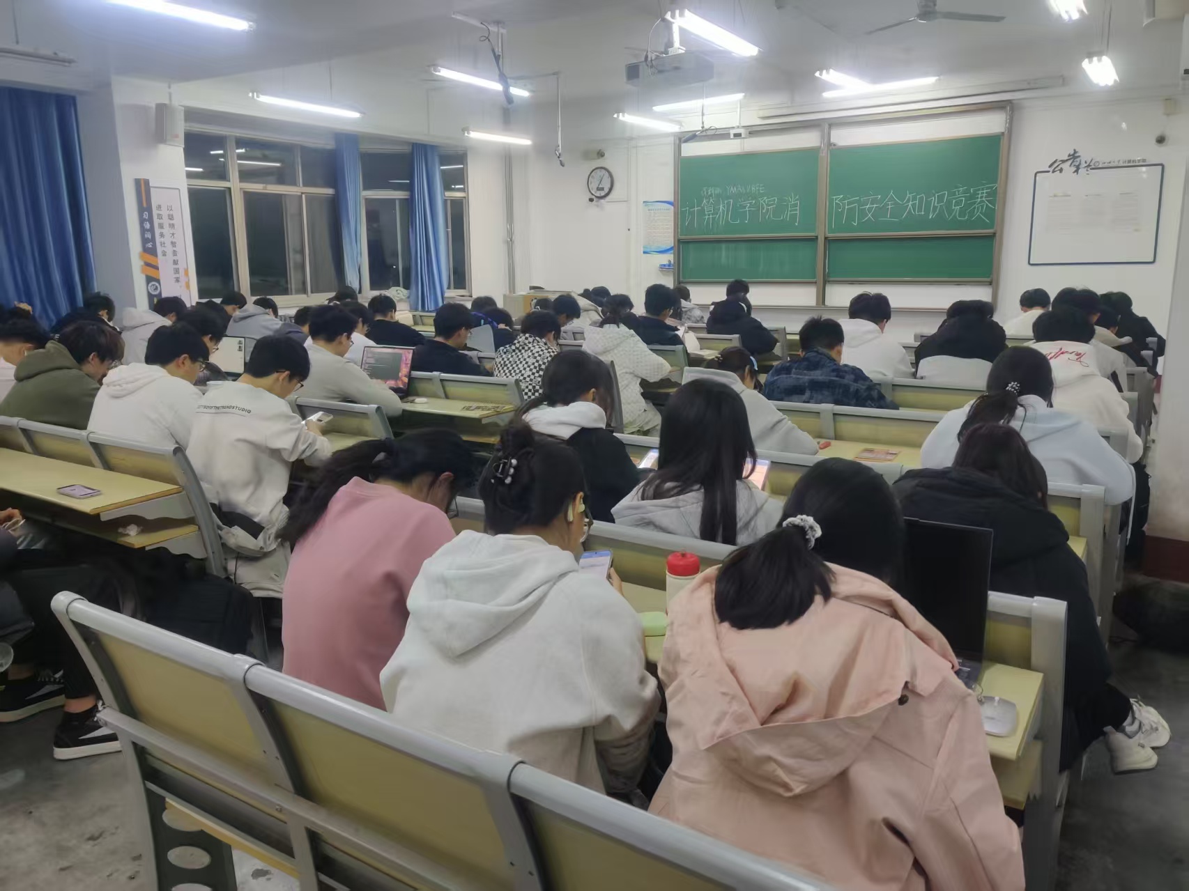 赛前,各班围绕典型火灾案例、火情发展规律及应急避险技能开展专题学习,让同学们直观认识火灾的危害,系统掌握不同火情的处置方法。竞赛环节设置50道题目,涵盖消防法规、隐患识别、逃生技能等核心内容,全方位检验知识掌握程度。答题过程中,参赛学生全神贯注、冷静应答,在脑力比拼中深化知识记忆,在模拟场景中锤炼应急能力,展现出扎实的安全素养与积极的学习状态。知识竞赛结束后,同学们纷纷表示,这次竞赛既纠正了他们对消防安全的认知误区,又强化了消防安全责任意识,他们将从自身做起,主动参与消防宣传,争做校园安全卫士。