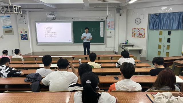 在进行了简单的自我介绍后,韦福龙首先对国考、省考、选调、事业编、人才优选、三支一扶等公职类考试的近几年的相关政策进行了解读,向同学们介绍了考试的基本信息、报考基本条件以及报考流程,并提醒同学们可以多维度考虑,通过多种途径进入公职岗位。韦福龙以2022届高校毕业生就业情况和规模为切入点,紧紧围绕当前社会形势,结合自身经验,对未来的就业趋势进行精准预测和分析,并结合不同专业的招录情况,提出合理建议。同时,对于公职类考试类型中最多人报考、最受欢迎的公务员考试,他做了进一步介绍。结合2023年报名与录取比例的具体数据让学生更为直观地了解到公务员考试的竞争压力,并且通过试做考试真题带领同学们了解公职类考试中的基本题型。随后他又对公职类考试命题规律和特点进行了详细的介绍,对如何进行科学备考进行了针对性的指导,给出一些备考建议,有助于同学们提前高效掌握考试做题技巧,帮助大家更快进入备考状态,提高学习效率。