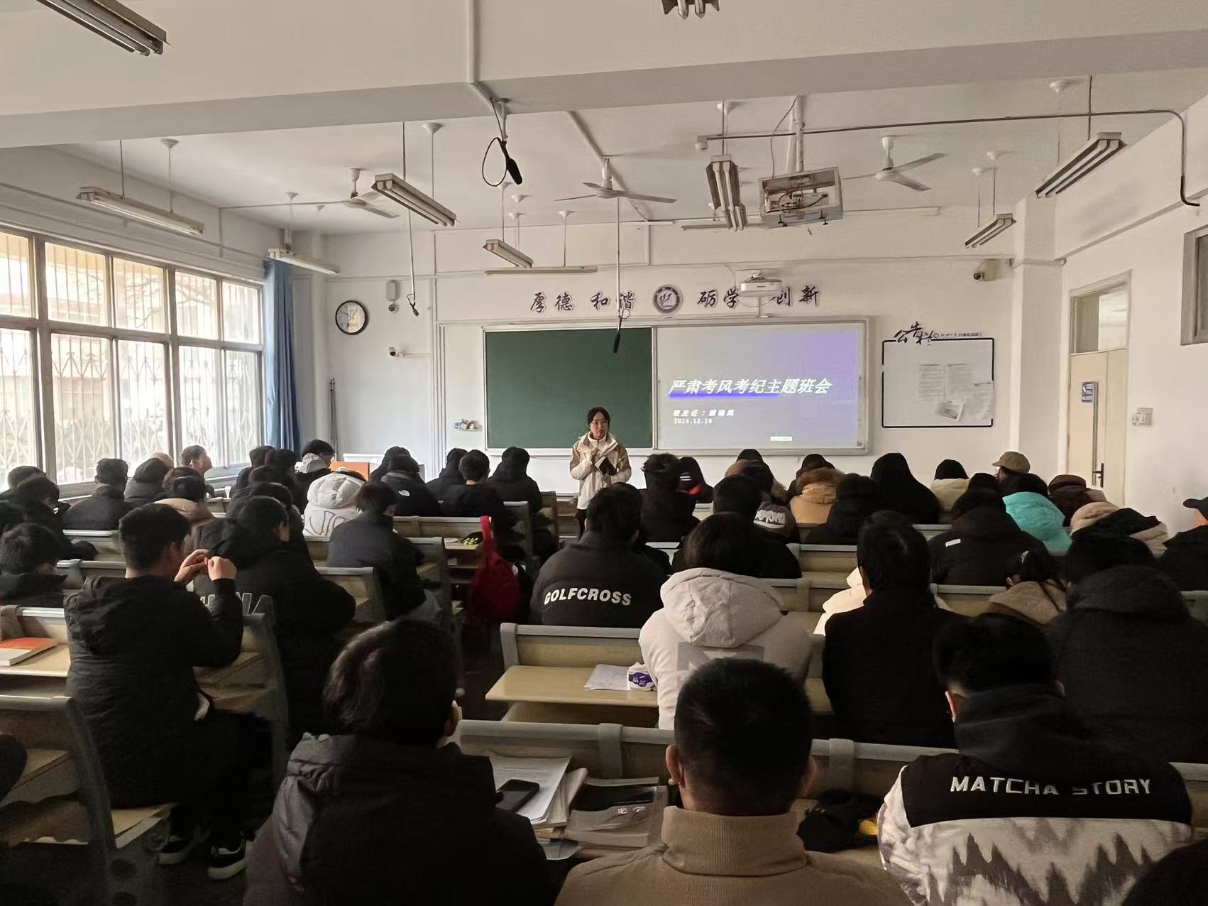 本次班会共分为期末考试考风考纪和反诈主题。会上,各班主任结合学校考试相关规定,详细阐述考试考纪的重要性,告诫同学们不要抱有侥幸心理,禁止出现作弊、替考等违反校规校纪的行为,学院坚决抵制任何违纪作弊行为,希望同学们自觉维护良好的考风考纪,营造文明、诚信考试的良好氛围。随后,班主任针对近期大学生诈骗案件频发的情况展开讲解,通过实际案例向他们介绍常见的诈骗分子诈骗手段和作案手法,如网络刷单、冒充公安诈骗、交友诈骗等,提醒同学们不要随意透露个人信息、谨慎点击陌生链接等,同时督促同学们下载了国家反诈中心APP,提高他们的自我防范和保护意识。班会最后,班主任希望同学们能够把诚信考试落实到行动中,合理安排作息时间,做好考前复习,在即将到来的期末考试中取得优异的成绩。