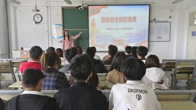 活动伊始,刘晓慧向同学们详细阐释了新时代国家安全的深刻内涵和广泛外延,通过具体案例分析了国家安全所面临的新形势、新任务以及新挑战,她号召同学们应牢固树立底线思维,自觉成为国家安全的坚定守护者、积极传播者和忠实践行者。随后,刘晓慧创新性地以国家安全知识竞赛的形式展开学习。竞赛主题明确,形式多元,题目类型包括单选题、填空题、论述题等,旨在全面检验团员们的学习成果。竞赛过程中,刘晓慧将团员们分为多个小组并提出问题。各小组积极抢答,成员间分工明确,配合默契,展现出了极高的学习热情和团队合作精神。活动临近尾声,团员代表们纷纷上台,分享了自己对国家安全学习的深刻感悟,他们纷纷表示,要提高自身国家安全意识,坚定信念,自觉成为国家安全的忠实践行者,为维护国家安全贡献青春力量。