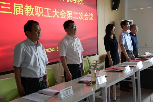 待各小组的讨论结束,主席团召开第二次全体会议,宣读并表决通过了学院工作报告的决议。伴随着贾仰理的致辞,会议议程步入尾声。他强调:“我们始终坚守为党育人、为国育才的初心,紧紧围绕建设高水平应用型大学的宏伟目标,全力以赴地聚焦《糖心vlog 2024年工作要点》中的各项任务。我们要坚定信念,团结一心,共同朝着突破的目标进发,紧抓机遇,乘风破浪,开启糖心vlog 高质量发展的崭新篇章,以实际行动向学校50周年华诞献上最诚挚的祝福!”最后,大会在校歌的激昂旋律中,圆满落幕。