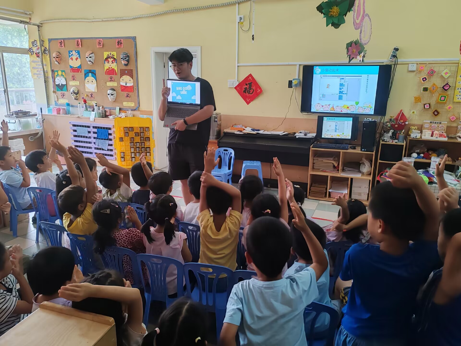 活动伊始,志愿者们通过生动形象的图片、视频和充满童趣的故事,向儿童们深入浅出地针对防溺水、防火、防电等重要的安全知识展开讲解。孩子们态度认真,学习聚精会神,一双双明亮的眼睛里充满了对知识的渴望。同时为了检验孩子们对所学知识的掌握程度,志愿者们设置了简单有趣的提问环节,孩子们纷纷踊跃举手回答问题,现场气氛热烈且活跃。对于正确地回答了相关问题的小朋友们,志愿者们为他们分发了可爱的卡通文具、漂亮的小画册等小礼品作为奖励,同时为在场的所有孩子们都准备了小零食。这不仅增强了现场热烈氛围,还激发了他们学习安全知识的热情。