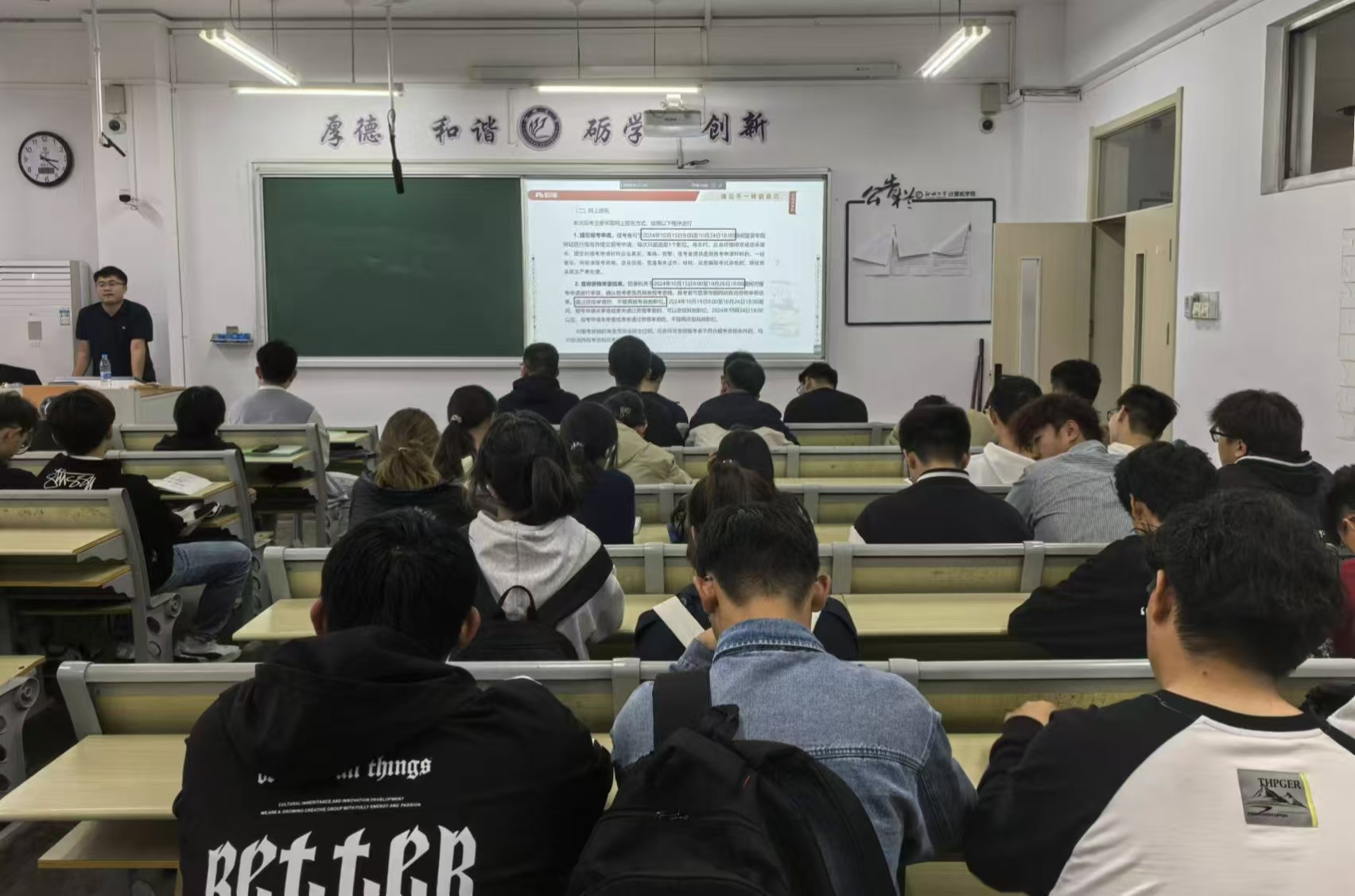 讲座伊始,周老师分析了近几年招考人数变化趋势,向在座同学分发相关书籍,引导同学们了解国考报考政策。讲座过程中,周老师对2025年国考报考进行细致讲解,介绍了参公的具体含义和岗位类型,阐释了公务员考试选岗的思路,强调了国考岗位的学历限制和政治面貌限制,结合同学们的专业特点,有针对性地进行了报考指导。同时,他结合往届考生的报考情况,指出了报考中的常见问题,使同学们对国考报考有了更加全面深刻的认识。在提问互动环节,同学们积极互动,踊跃提问,周老师耐心倾听,一一解答,并和他们深入交流。讲座结束后,同学们纷纷表示此次讲座激发了他们的学习热情,帮助他们端正心态、明确努力方向,增强了备考信心。