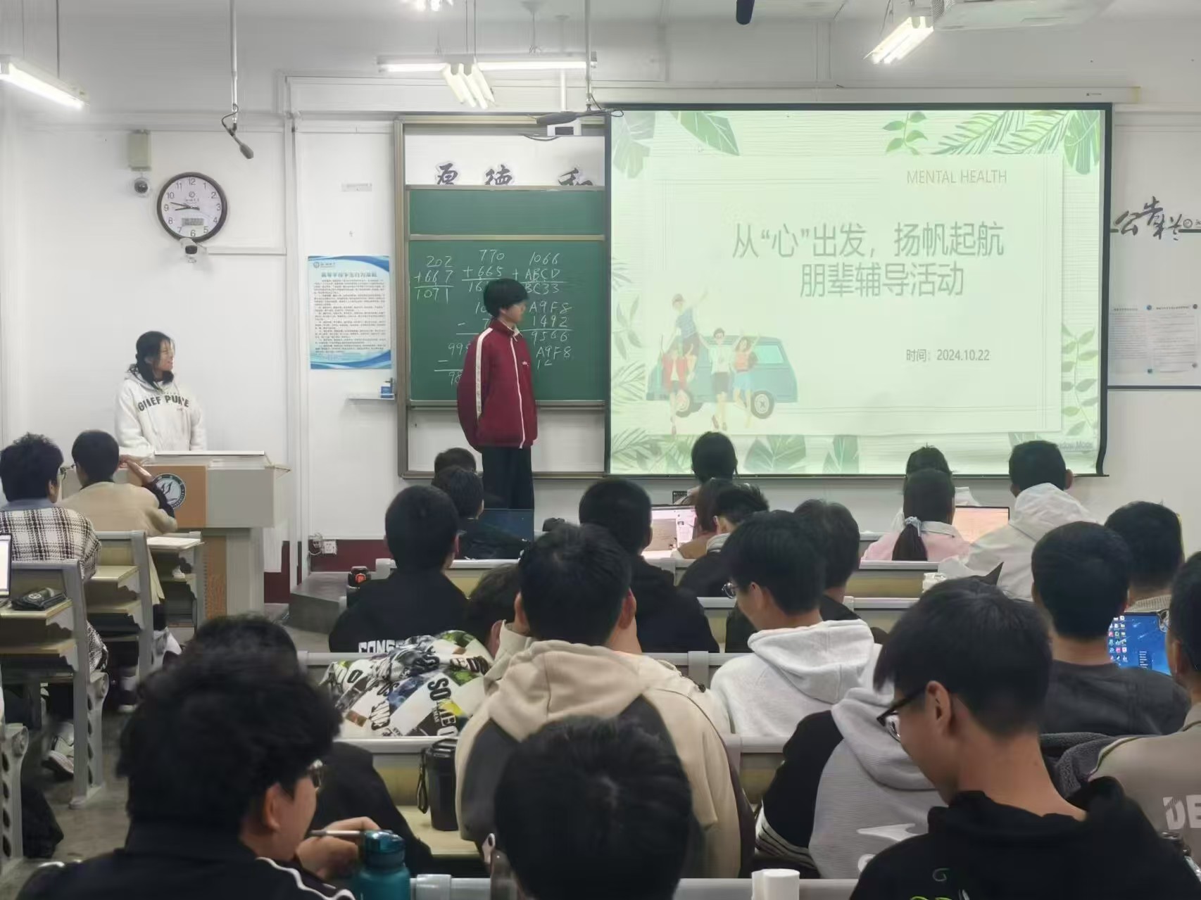 为促进朋辈心理辅导员之间的交流与合作,提高同学们对心理健康重要性的认识,11月7日,糖心vlog 心理部开展“从心出发,扬帆起航”朋辈辅导活动。本次活动由各班心理委员担任主讲人。