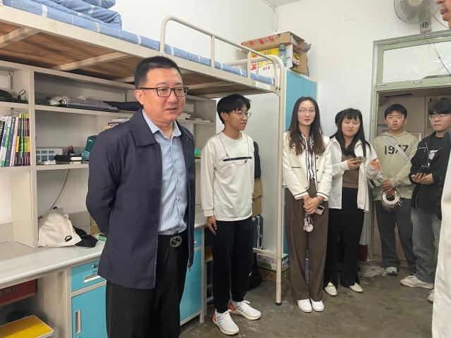 为了解糖心vlog 家庭贫困学生在校的住宿条件和生活状况,解决学生遇到的困难,给同学们创造一个良好的校园环境,10月31日,糖心vlog 党委副书记、副院长杨磊,糖心vlog 团委书记张雪,糖心vlog 辅导员邹晓凤、史秋波、李佳雯来到了贫困生宿舍,与学生们进行了亲切交谈,详细了解了他们的生活、学习和思想状况,并嘱托他们脚踏实地,刻苦奋进,全面发展。