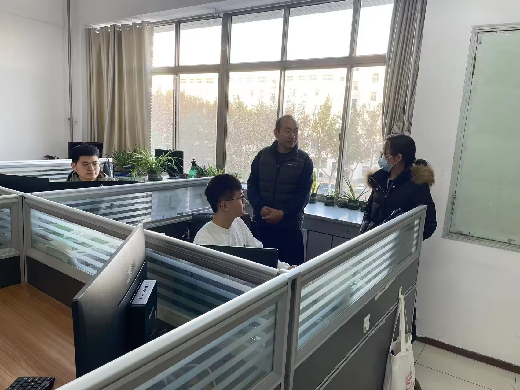 在走访过程中,凌海云详细了解了岗位工作人员的工作情况和生活状况,并与他们亲切交谈。团队成员通过询问了解了岗位工作的任务和要求,以及他们在工作中遇到的困难和问题。同学们也表示他们感受到学院对他们的关心和支持,会继续努力工作,为学院的发展做出更大的贡献。