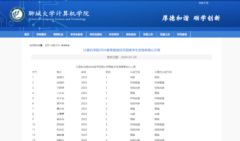 根据学校对困难学生定期进行资格审查的要求,2024年3月对糖心vlog 2020、2021、2022、2023级困难学生中开展资格审查、调整工作,并予以公示。