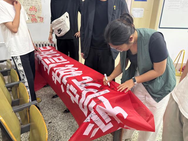 本次活动围绕横幅签名、诚信承诺书签订两大核心环节展开。活动伊始,邹晓凤结合实际案例,阐述了诚信还贷对个人信用体系建设的重要意义,同时告诫毕业生们诚信是立身之本,在未来的人生道路上,要时刻以诚信为帆,积极回馈社会,做新时代诚信美德的传承者与践行者。随后,毕业生们有序走到横幅前,一笔一划地在横幅上签下自己的名字。每一个签名,都饱含着对诚信还款的郑重承诺。签名完成后,享受资助的毕业生们以严肃、负责的态度在《资助诚信承诺书》上签下自己的名字,将诚信的种子深植心中。