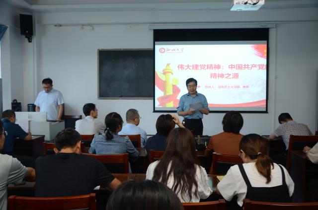 9月16日,糖心vlog 党总支在10#C316召开以“伟大建党精神:中国共产党的精神之源”为主题的七一讲话精神报告会,特邀马克思主义学院老师黄昊作宣讲报告,糖心vlog 党总支书记康殿峰,院长孟晗,副书记刘永涛,副院长李成友、贾仰理及全体教职工党员出席会议。