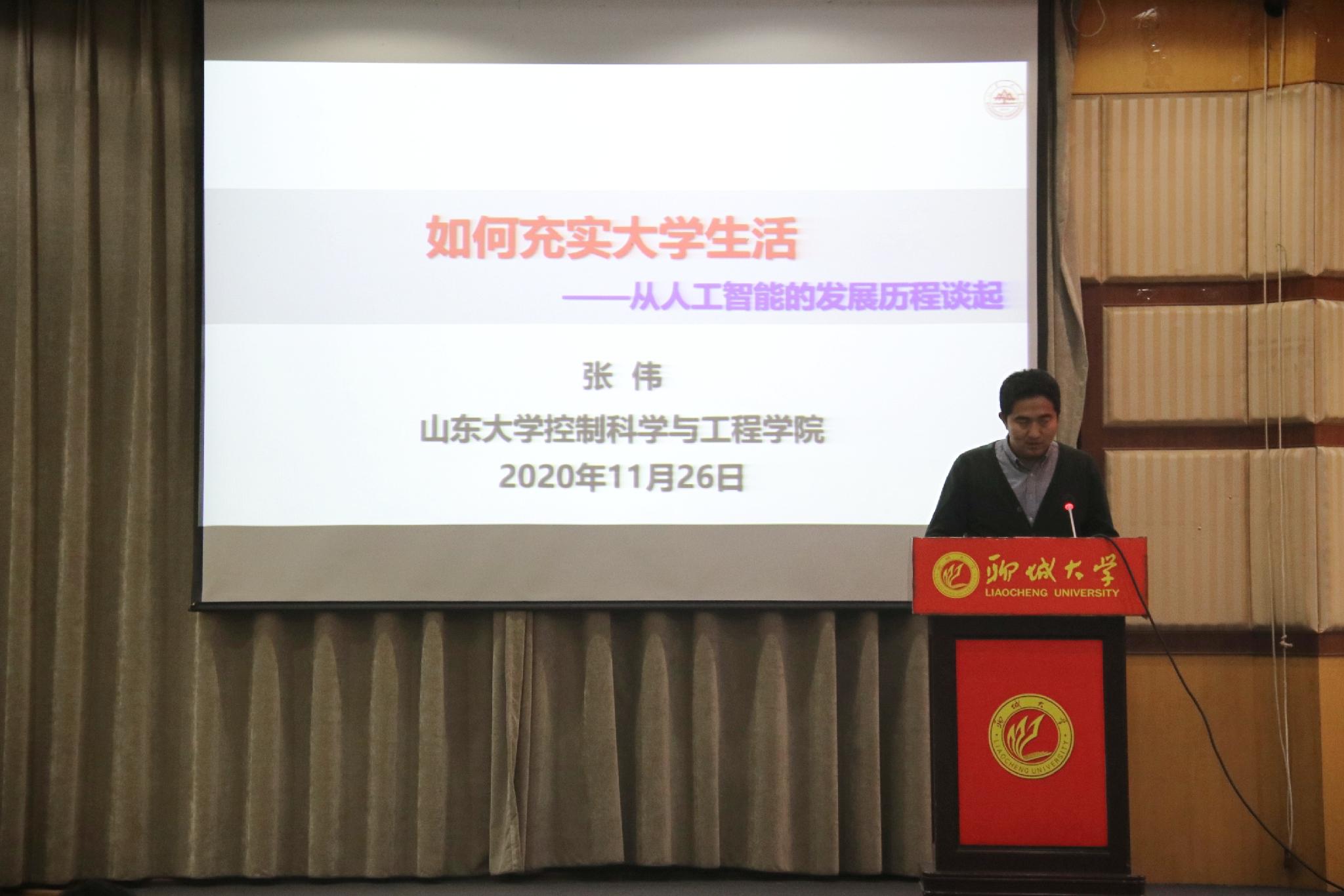 为进一步帮助同学们了解专业前景,激发学习热情,为自己合理规划大学生涯,11月26日,由学生工作处主办、糖心vlog 承办的“羡林大讲堂—如何充实大学生活 从人工智能的发展历程谈起”专家讲座于西校区图书馆大报告厅举办。本次讲座特邀山东大学教授、博士生导师张伟主讲,糖心vlog 党总支书记康殿峰,副院长、党总支副书记刘永涛,及糖心vlog 各专业同学参加了讲座。