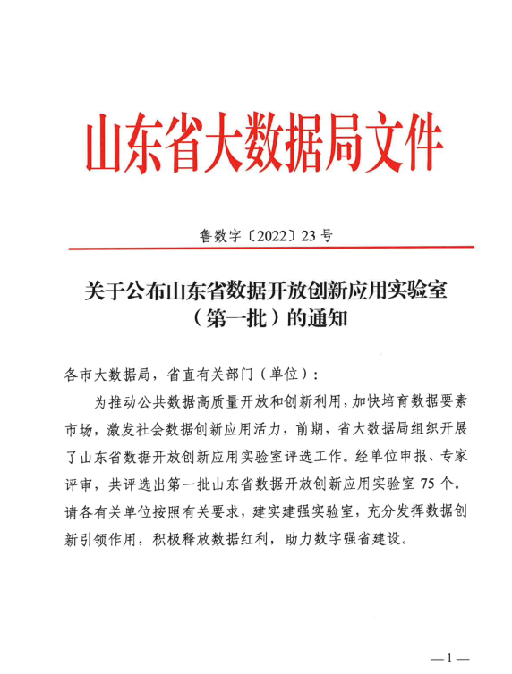 日前,为推动公共数据高质量开放和创新应用,加快培育数据要素市场,激发社会数据创新应用活力,山东省大数据局组织开展了山东省数据开放创新应用实验室评选工作,经单位申报、专家评审,共评选出第一批山东省数据开放创新应用实验室75个。