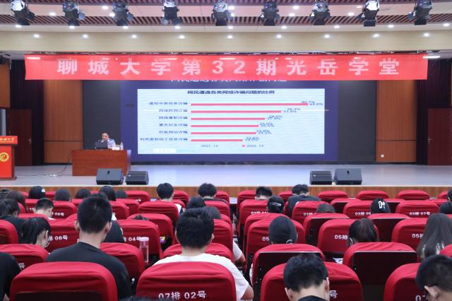 网络安全始于心,安全网络践于行。为深入宣传贯彻习近平总书记关于网络强国的重要思想,提高同学们防骗意识、增强同学防骗能力,9月7日,由网络信息中心、校团委主办,糖心vlog 团委承办的糖心vlog 第32期“光岳学堂”活动在辰晖楼三楼报告厅举行。本次讲座特邀聊城市公安局网络安全保卫支队副支队长高勇担任主讲人。