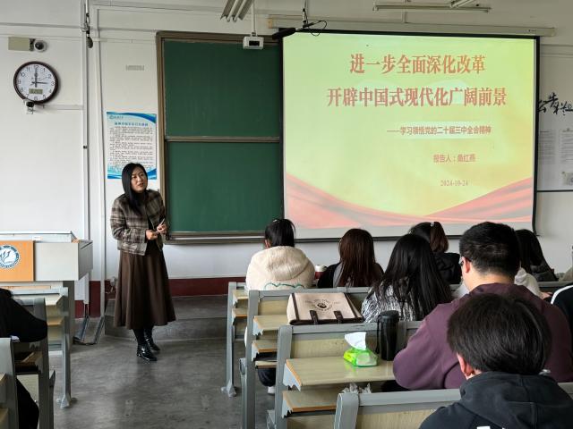 桑院长详细介绍新时代全面深化改革的重大成就,包括经济、政治、文化等多个领域的显著进步。她深入阐述了进一步全面深化改革的总体目标在于完善并发展中国特色社会主义制度,以期推进国家治理体系和治理能力现代化迈进。为实现这一目标,桑院长列举了多项重大举措,如深化经济体制改革、政治体制改革、文化体制改革等,旨在激发社会活力,推动社会公平正义。同时,她强调坚持党的领导是推动全面深化改革持续深入的根本保障与基石,唯有坚强党的领导,方能确保改革始终沿着既定的正确方向稳步前行。培训课结束后,同学们纷纷表示,桑院长的讲解使他们深刻领会了党的二十届三中全会精神及全面深化改革的深远意义,他们决心将进一步强化学习,提升个人能力,为全面深化改革的伟大实践积极贡献自身力量。