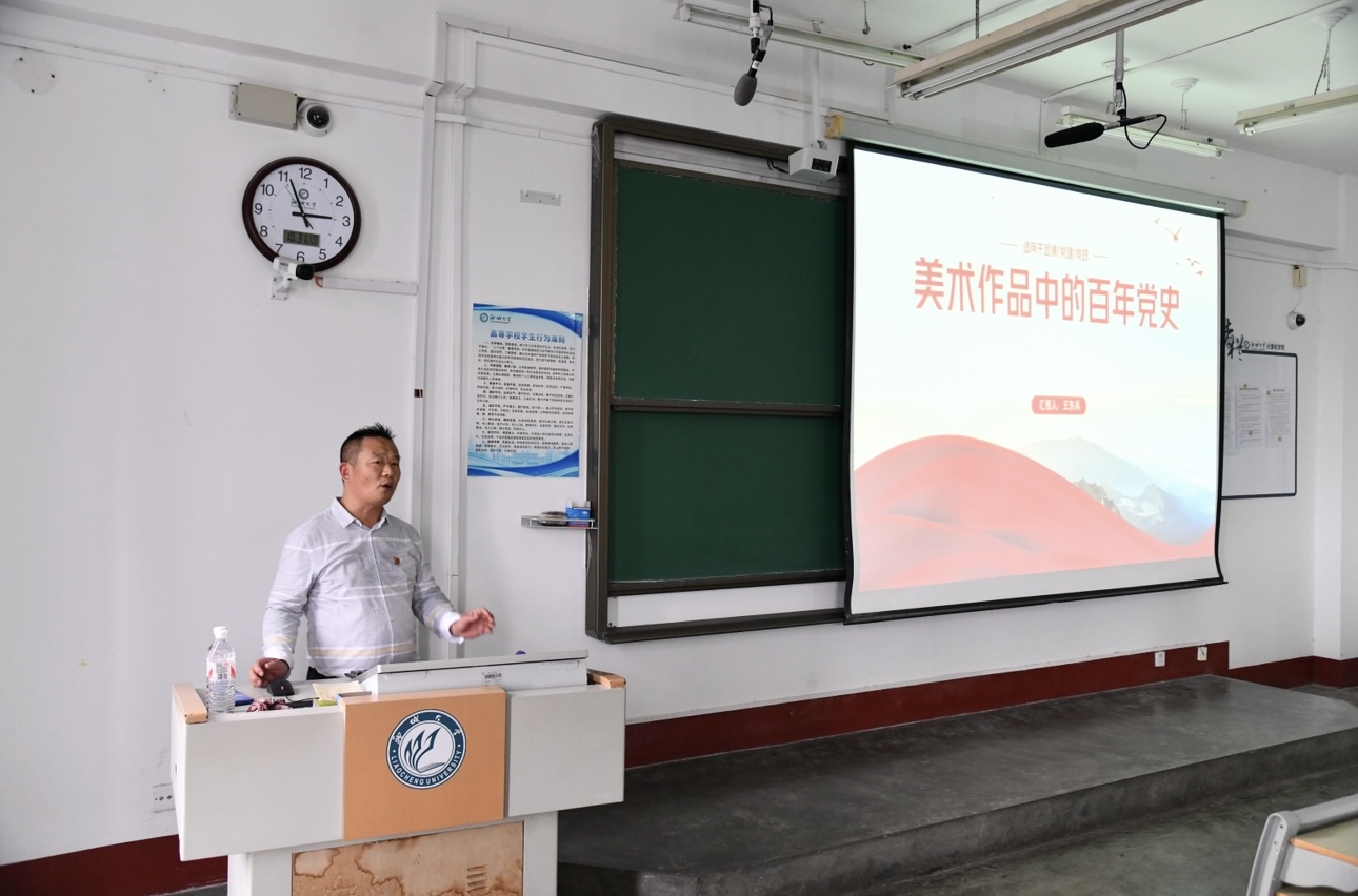 王东兵以时间线为轴,讲述新民主主义革命时期、社会主义革命和建设时期、改革开放和社会主义现代化建设时期、中国特色社会主义新时期四个不同时期涌现出来的经典美术作品,展现出中国美术的百年发展与中国共产党辉煌的奋斗历程相叠印,与党的事业发展壮大同频共振。他从画面上的人物神态和动作、色彩、光线投射等角度向同学们讲解这些美术作品呈现出来的细节和画面效果,让他们通过美术作品了解到作品背后的历史故事,加深了对党的认识,坚定对党的信仰。同时,王东兵还热情地与同学们进行互动,不仅充分调动了他们的学习兴趣,也让同学们感受到画作艺术表现的魅力。培训结束后,同学们纷纷表示通过老师对这些美术作品的讲解,对党的发展历程有了全面的认识,对美术作品也有更深刻的理解,他们将充分发挥先锋模范作用,为实现中华民族伟大复兴的中国梦贡献青春力量。