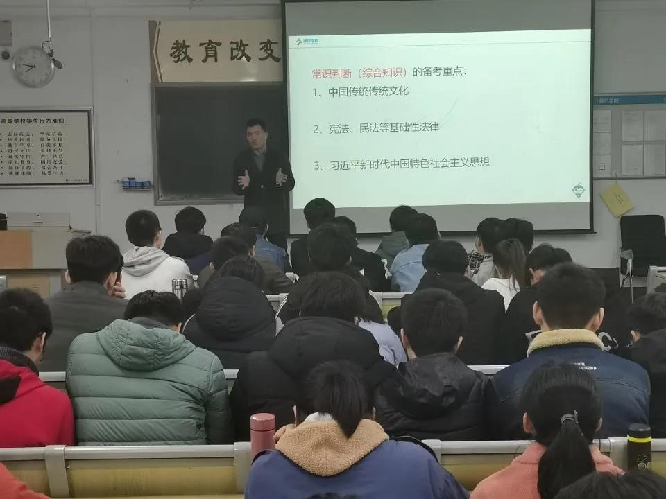 活动伊始,周文瑞以应届毕业生关心的公考问题为切入点,围绕如何做好职业规划、怎样比较公职类职业以及公职考试中的应试技巧这三大版块,为现场同学提供精准的就业规划指导,并列出报考选调的四个硬性条件,解答了同学对公职类就业的疑惑。随后周文瑞梳理了常识判断的备考重点,并以往年考试真题为例,让同学们理解大致考试方向。周文瑞讲解示范深入浅出,针对性强,通俗易懂,参与讲座的应届毕业生认真听取讲座内容,做好学习笔记,并就自身实际情况与主讲人进行互动交流。讲座结束后,负责人现场赠送备考资料,旨在为应届毕业生的发展提供全方位的服务。