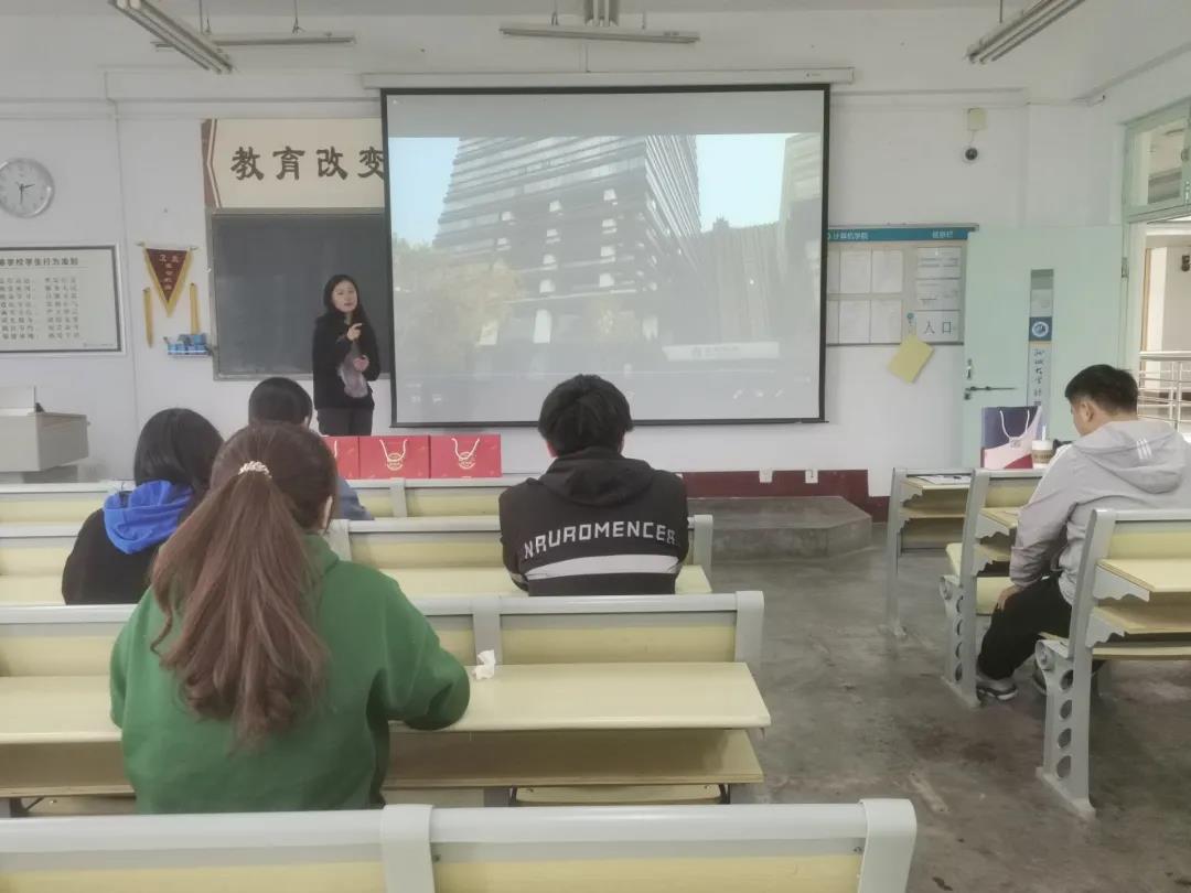会议伊始,高月从行业概况、公司介绍、招聘岗位和薪酬发展四个方面向同学们介绍了学而思网校,通过播放视频展示了学而思网校优良的授课环境,表明学而思网校是好未来教育集团旗下中小学教育品牌,是国内较早整合“互联网”与“教育”领域的学习平台,布局十五大城市,特邀业内大师讲授精彩“大师课”,具有完备的教学体系和成熟的教育模式,在当前在线教育极速增长的情况下,具有巨大的发展潜力。此次招聘会主要招聘在线班主任老师,分为学习服务和运营转化两个基本方向,主讲人向同学们展示了在线班主任老师的工作场景,表明在线班主任职业发展的多样化,同时列出了学而思网校丰厚的公司福利和开放的工作氛围,鼓励同学们积极报名。随后主讲人介绍了在线班主任的任职要求和招聘流程,并向同学们赠送了小礼品,招聘会在和谐融洽的氛围中落下帷幕。